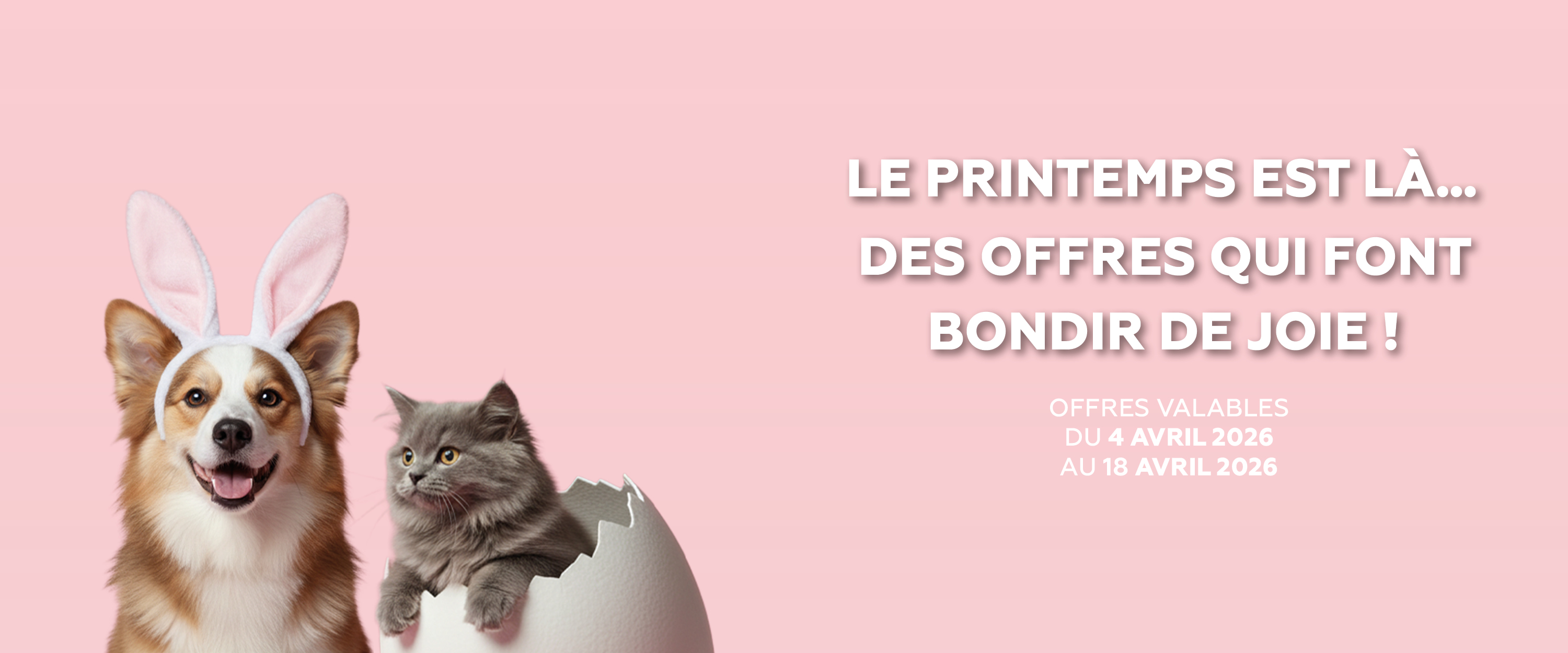 À l'occasion du printemps et des promos de Pâques, Nilufar vous propose une sélection d'offres pensées pour faire plaisir à vos animaux tout en prenant soin de leur bien-être. Du 4 au 18 avril, retrouvez ci-dessous nos univers en promo et découvrez de bonnes idées pour les équiper, les nourrir et les chouchouter.