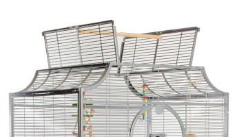 - Toit ouvrant : permet une sortie encadrée pour les oiseaux apprivoisés ou en semi-liberté (utile pour calopsittes, grandes perruches, gris du Gabon...)